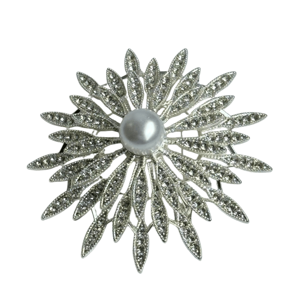 Diese elegante Anstecknadel besticht durch ihr einzigartiges, sternförmiges Design mit einer großen, strahlenden Perle im Zentrum. In den zarten Farbtönen Weiß und Rosé gehalten, verleiht sie jedem Outfit eine feminine und zugleich raffinierte Note.
