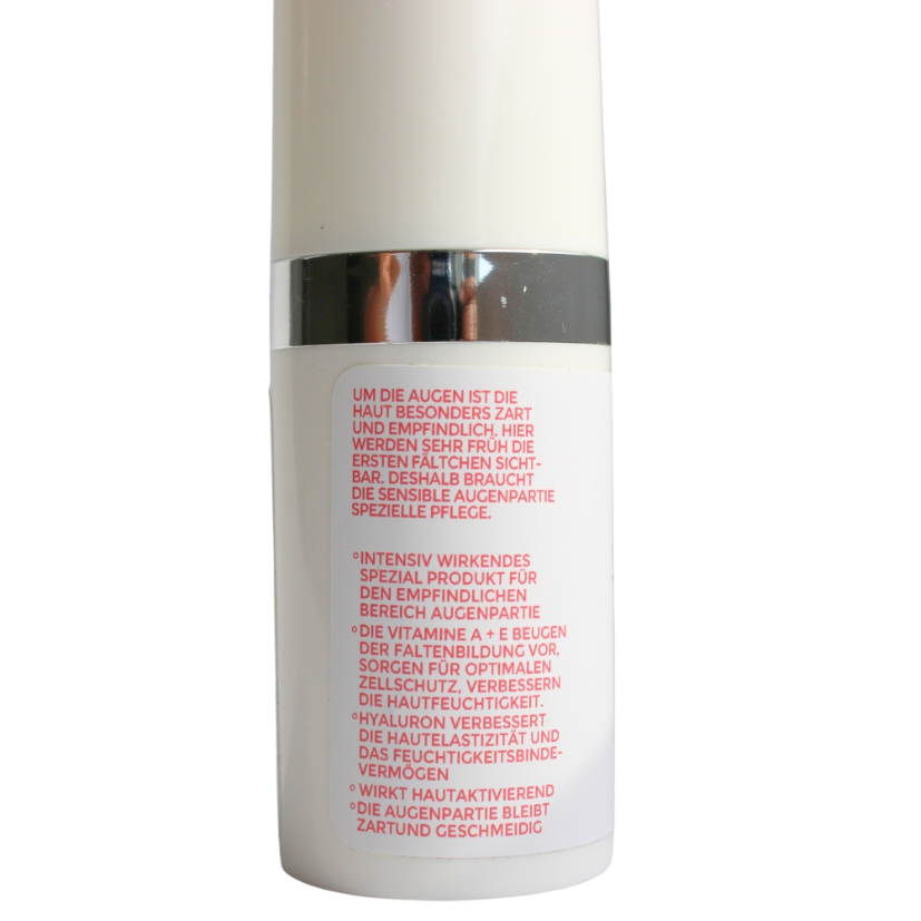 Intensiv wirkendes Spezialprodukt für den empfindlichen Bereich der Augenpartie mit Honig, Vitamin A+E, Hyaluron, pflegenden Ölen sowie einem Antifaltenwirkstoff. Diese Wirkstoffe beugen der Faltenbildung vor, sorgen für optimalen Zellschutz, verbessern die Hautfeuchtigkeit und die Hautelastizität. Die Augenpartie bleibt zart und geschmeidig.