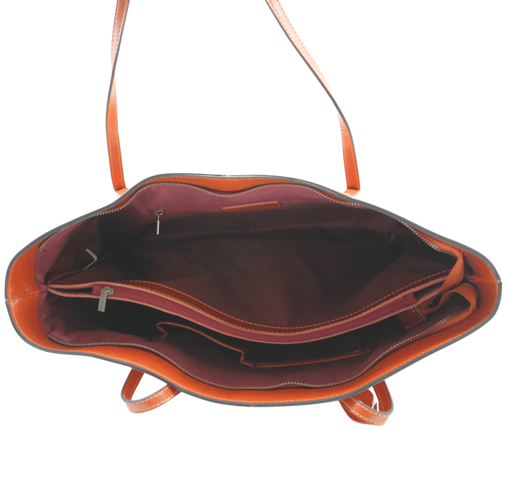 Ein durchgehender Reißverschluss sorgt dafür, dass der Inhalt geschützt ist und niemand unbemerkt hineingreifen kann – ein praktisches Detail, das viele klassische Shopper nicht bieten. Im Inneren befindet sich ein großes Hauptfach mit hochwertigem Innenfutter, das durch ein mittiges Reißverschlussfach clever unterteilt ist. So entsteht viel Platz für alle Essentials wie Geldbörse, Smartphone, Kalender oder Tablet – übersichtlich und sicher verstaut.